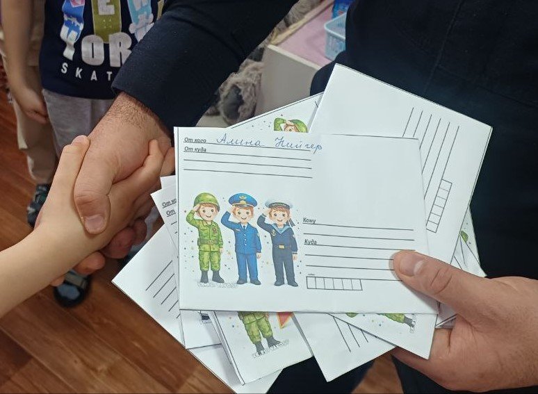 «В этом детском саду есть дети сотрудников Росгвардии, чьи отцы выполняют задачи в районе специальной военной операции. Каждый солдат, получивший письмо от детей на праздник с малой Родины, будет очень рад», - отметила майор полиции Алина Ч.
