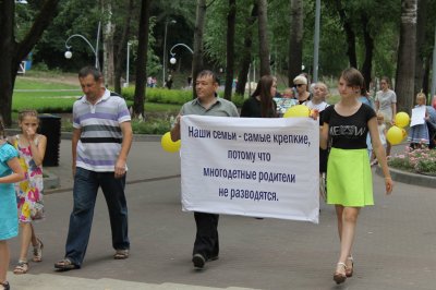 Акция ОНФ «Парад семьи» состоялась в Центральном парке Воронежа, который является самым популярным в региональном центре местом семейного отдыха. Начался праздник с торжественного шествия, в котором приняли участие более 30 многодетных семей. Большинство из них воспитывают пять и более детей. Участники шествия прошли от центрального входа в парк до пруда. Они несли ромашки, которые являются символом Дня семьи, любви и верности, транспаранты. Дети несли изображения генеалогических деревьев своих семей, которые они изготовили вместе с родными.