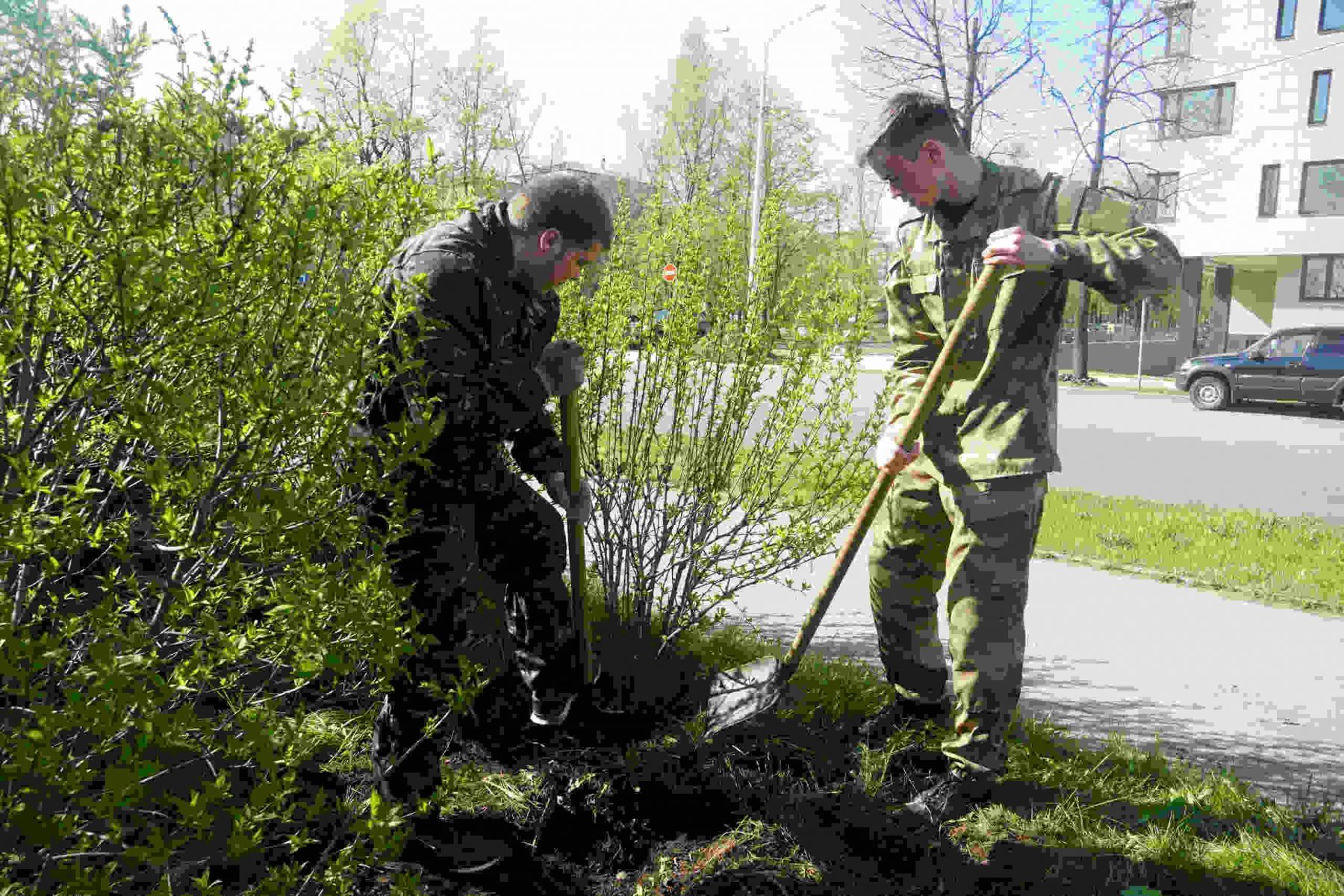 В Петрозаводске росгвардейцы пересадили барбарисовую рощу