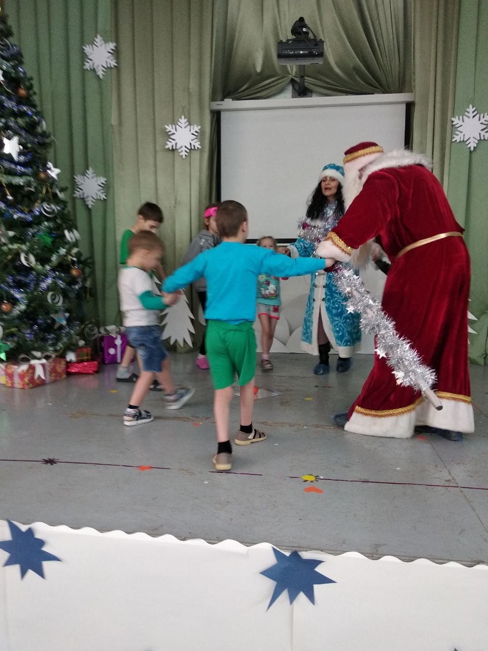 Я не отчаивалась. Начала спрашивать друзей. Смастерила волшебный посох из того, что оказалось под рукой дома. Затем появилась идея конкурса с украшением Ёлки, это добавило энергии! У знакомой Татьяны нашелся костюм Деда Мороза. Удалось договориться и с самим Дедом Морозом!