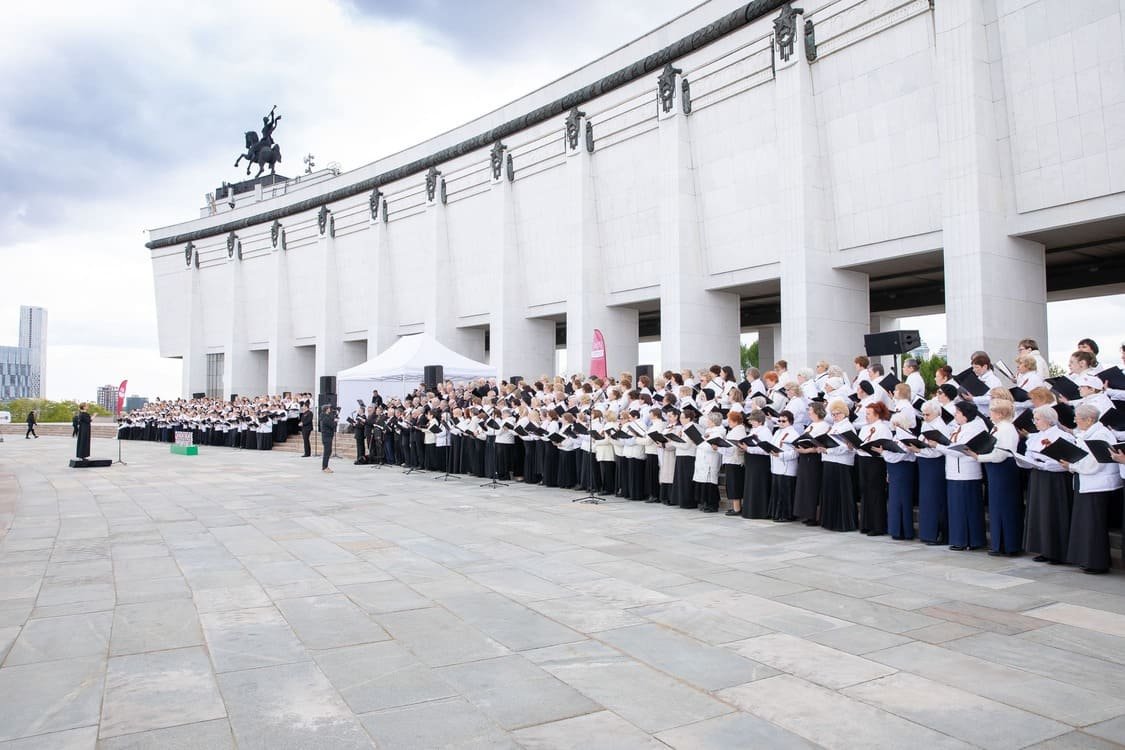 У стен Музея Победы 8 мая состоялось выступление большого сводного хора проекта «Московское долголетие», сообщили корреспонденту Информационного агентства МАНГАЗЕЯ. Праздничный концерт был посвящен Дню Победы.