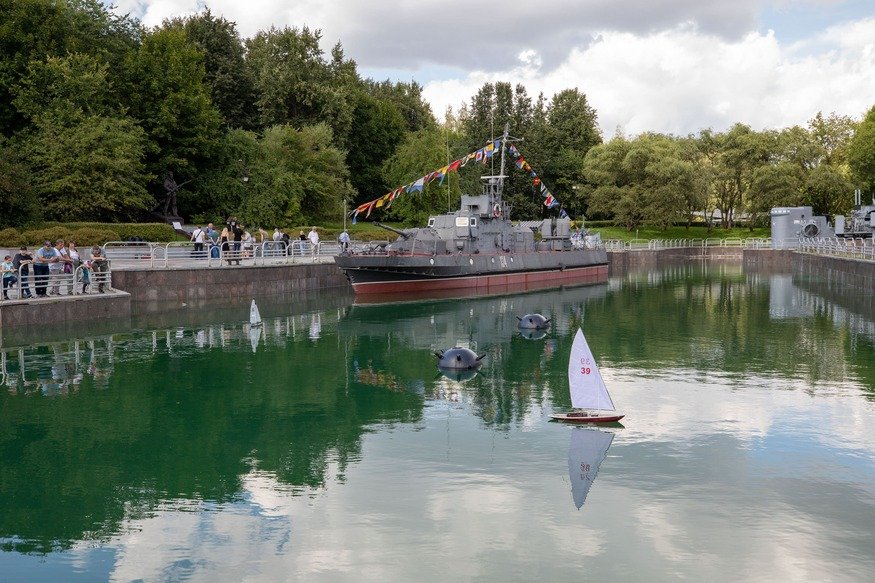 Также для гостей работала выставка радиоуправляемых моделей военных кораблей и яхт. Представители Федерации судомодельного спорта России представили мини-копии судов на открытом водоеме музея «Г.О.Р.А.», олицетворяющем военно-морскую базу, и гости могли поуправлять радиомоделями.