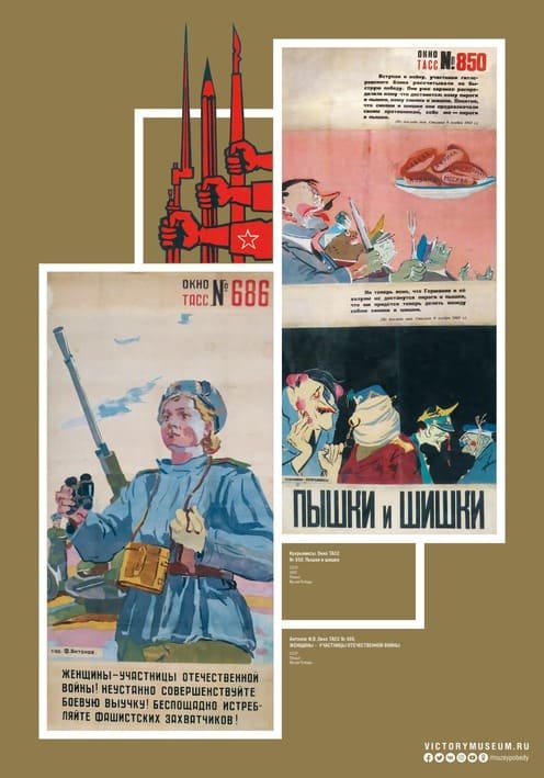 «Традиции агитационного плаката времен Гражданской войны возродились во время Великой Отечественной. Первый тираж «Окон ТАСС» был выпущен 27 июня 1941 года. Пяти дней хватило, чтобы художники-карикатуристы и поэты, в том числе и авторы легендарных «Окон сатиры РОСТА», объединились, образовав редакцию по созданию военно-оборонного плаката, поднимающего дух воинов и мирного населения», - отметили в Музее Победы.