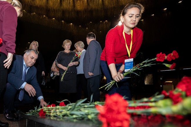 Участники Всероссийского форума-съезда делегатов образовательных организаций кадетской направленности 4 ноября посетили Музей Победы. Как сообщили корреспонденту Информационного агентства МАНГАЗЕЯ, около 100 руководителей кадетских корпусов из различных регионов нашей страны возложили цветы к мемориалу в Зале Памяти и Скорби.