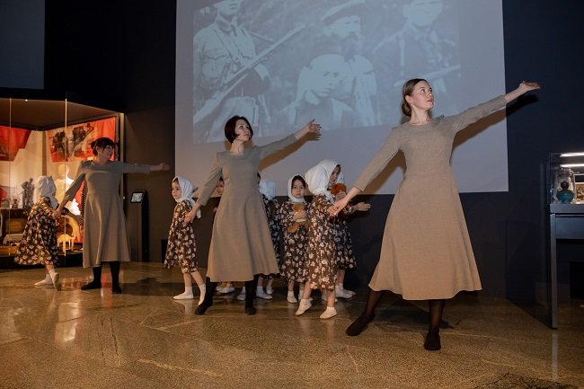 Школьники из 8-го класса художественно-эстетического профиля подготовили программу «Искусства огненные вёрсты». Гости перенесутся в 1941 год на танцплощадку и увидят популярнейший танец того времени «Рио-Рита». Гостям встречи расскажут о фильме Ивана Пырьева «Свинарка и пастух», съёмки которого были прерваны 22 июня 1941 года и возобновлены по личному приказу Иосифа Сталина. Помощником оператора этого фильма был Виктор Масленников, который добровольцем ушел на фронт в составе 21-й дивизии народного ополчения.