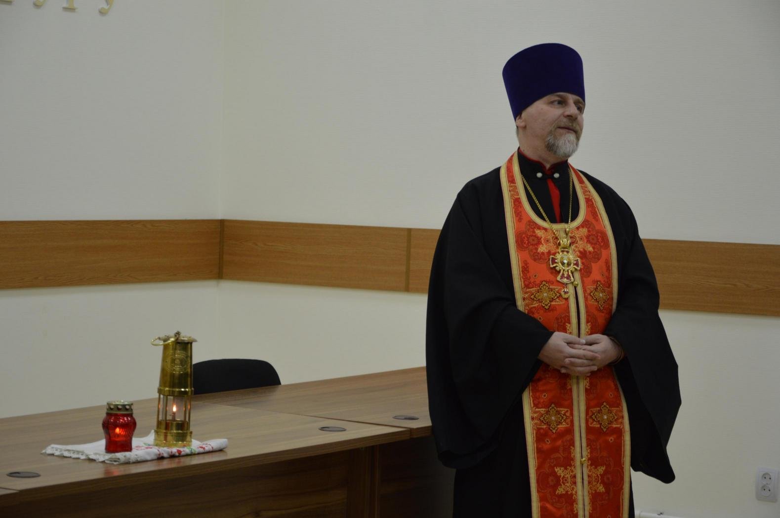 В этом году этот день выпал на второй день Пасхи, и протоиерей Сергий Трофимович принес в ведомство частицу благодатного огня.