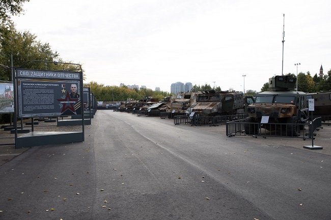 Новый масштабный проект открылся сразу в двух локациях: в главном здании музея на Поклонной горе и в филиале — музее «Г.О.Р.А.». Здесь под открытым небом на площади 8 тысяч квадратных метров представлены более 20 образцов подбитой трофейной военной техники стран НАТО и Украины, уничтоженных в ходе СВО. Среди экспонатов — бронеавтомобили «Козак-5», BMC Kirpi, Roshel Senator, International MaxxPro, боевые машины пехоты Marder 1A3 и Bradley, танк M1A1SA Abrams и другие. Экспозицию дополняют фотоработы военных корреспондентов РИА Новости и ТАСС, запечатлевших события спецоперации и подвиги наших бойцов.