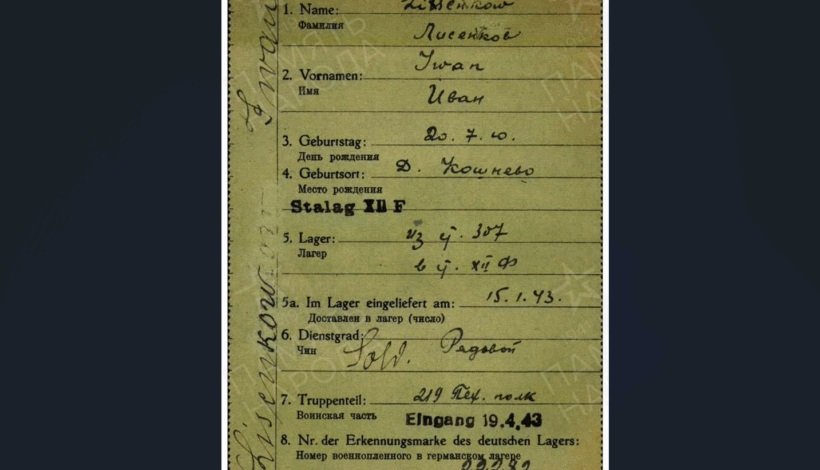 Как выяснили специалисты Центра сохранения памяти о советских военнопленных, рядовой Иван Михеевич Лисенков попал в плен в районе Нарвы 20 августа 1941 года. Его содержали в лагерях шталаг 307 и шталаг XII F.