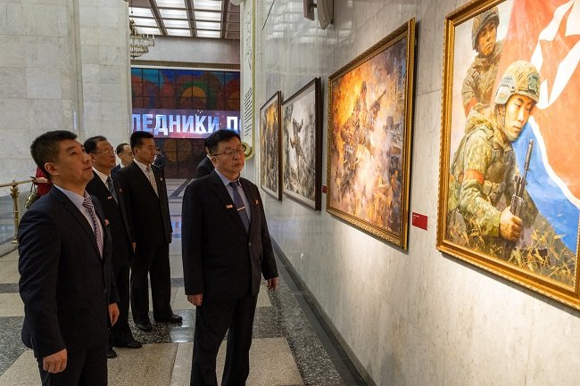 «Для гостей провели экскурсию по новой выставке «Плечом к плечу», посвященной сотрудничеству России и КНДР. Открытие выставки было приурочено к годовщине установления дипломатических отношений между СССР и Корейской Народно-Демократической Республикой (12 октября 1948 года). Также делегация посетила уникальную экспозицию «Подвиг Народа», в которой представлен вклад в Победу тружеников тыла — тысяч рядовых граждан страны, деятелей науки, медицины, культуры и всех, кто, не жалея сил и здоровья, трудился на благо страны в тяжелые годы Великой Отечественной войны», — рассказали в Музее Победы.