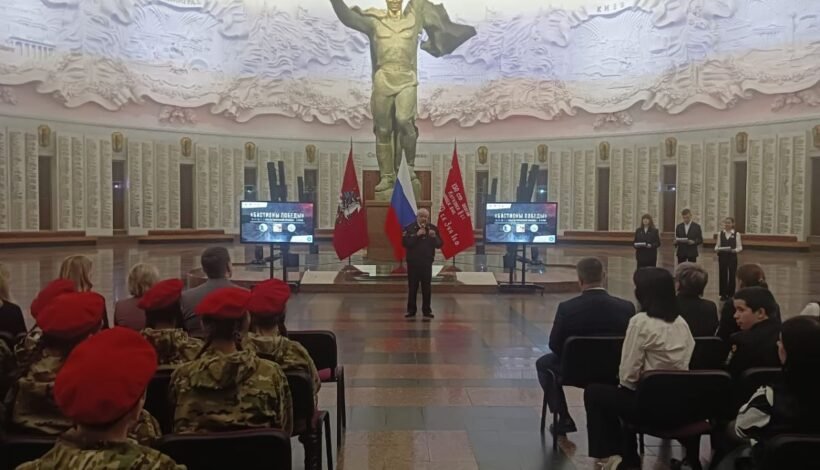 «Приветствую вас от имени генерального директора Музея Победы Александра Яковлевича Школьника. Нам очень приятно открывать очередную выставку в нашем музее. Это уже почти 80-я выставка за шесть лет существования программы «Школьный Музей Победы». Ваши экспонаты смогут увидеть посетители нашего музея», — обратился к юным музейщикам заместитель генерального директора Музея Победы вице-адмирал Федор Смуглин.