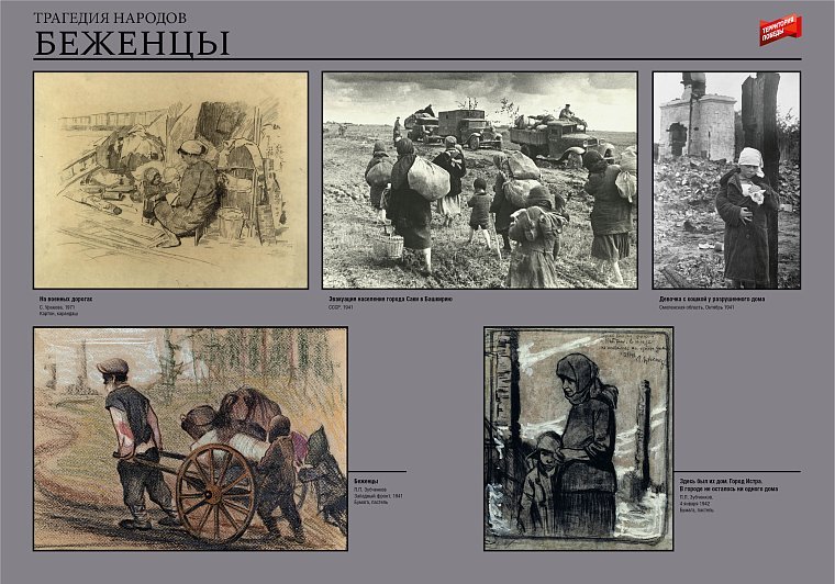 Выставка музея на Поклонной горе «Трагедия народов» посвящена памяти советских граждан, пострадавших от нацистской агрессии и оккупационной политики, памяти замученных в гетто и концлагерях, угнанных на принудительные работы в Германию и сопредельные страны. В экспозиции представлены более 100 оцифрованных печатных раритетов из фондов Музея Победы — репортажные фотографии военных корреспондентов, документы, плакаты, листовки, фронтовые рисунки и работы послевоенных художников, свидетельствующие о преступлениях нацистов.