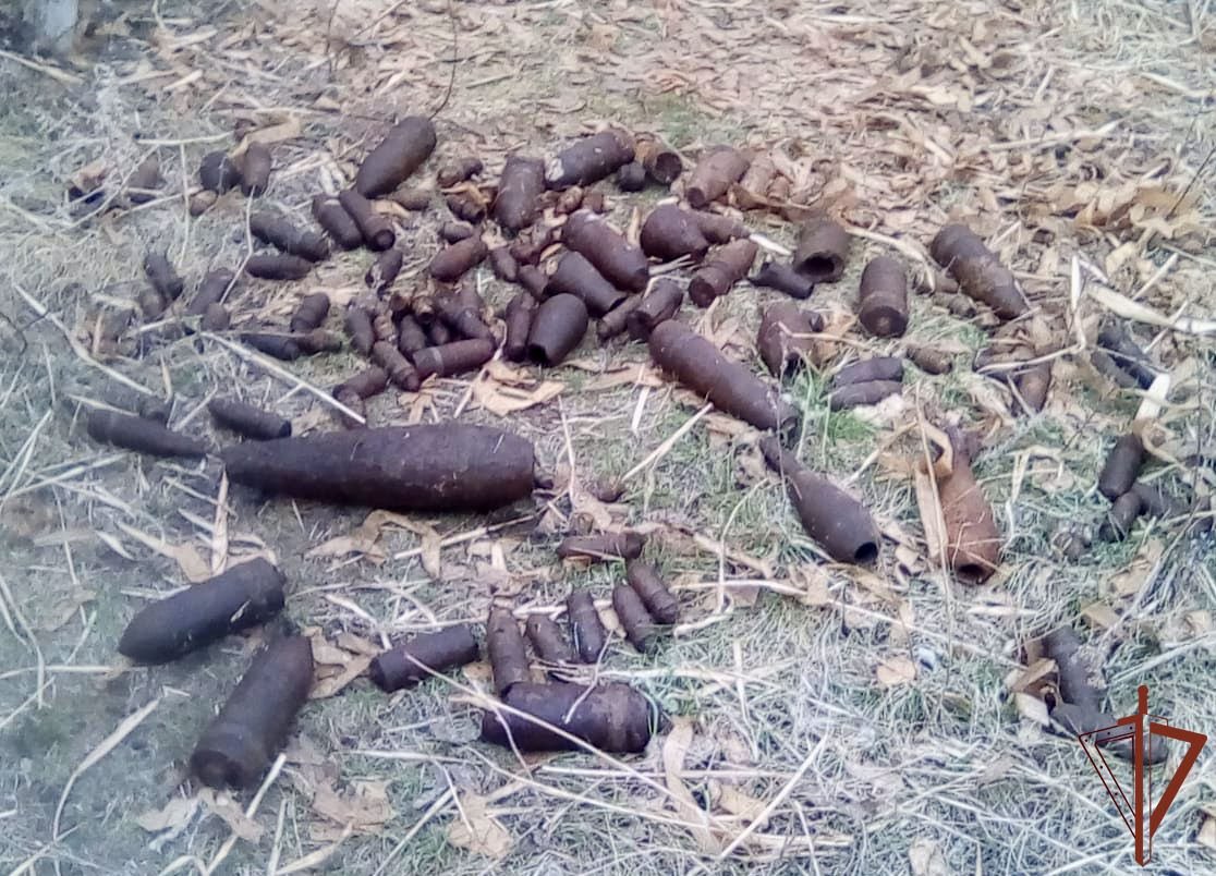 Прибывшие на место специалисты группы разминирования, осмотрев более ста предметов, внешне похожих на боеприпасы, установили, что это артиллерийские снаряды и минометные мины различного калибра со следами глубокой коррозии.