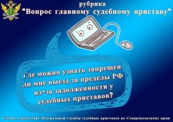 Где можно узнать о запрете выезда за пределы Российской Федерации из-за задолженности у судебных приставов корреспонденту "Информационного агентства МАНГАЗЕЯ" рассказала главный судебный пристав Ставропольского края Марина Захарова:- В помощь гражданам-должникам на портале Госуслуг работает сервис, с помощью которого можно узнать ограничен должник в праве выезда за пределы РФ или нет. При запросе информации в сервисе "Ход снятия ограничения выезда из России" мгновенно приходят сведения о наличии или отсутствии запрета. Соответственно, получив ответ можно планировать заграничную поездку, ну либо при имеющемся запрете, погашать задолженность.