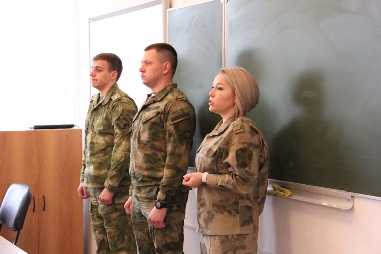 Военнослужащие воинской части с дислокацией в п. Карца капитан Максим Колиогло, лейтенант Виктор Чухлебов и прапорщик Юлия Реймер рассказали шестиклассникам об учебе в ведомственных вузах и службе в рядах войск национальной гвардии, о героизме сослуживцев. Вместе со школьниками росгвардейцы почтили память боевого товарища старшего сержанта Бориса Торчинова, чье имя увековечено в стенах его родной школы на памятном стенде.
