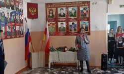 Учащиеся младших классов исполнили патриотические песни и прочитали стихотворения. Присутствующие почтили минутой молчания память героев, сослуживцы рассказали об их жизни и службе. Завершилось мероприятие возложением цветов к стенду.