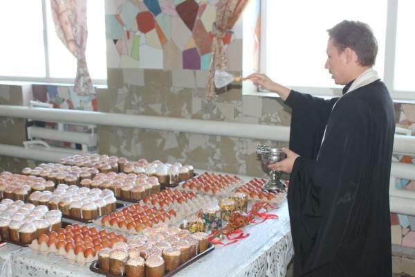 Осужденных КП-11 УФСИН России по Саратовской области с праздником Великой Пасхи поздравил священнослужитель Русской Православной Церкви отец Борис, который совершил для отбывающих наказание в колонии-поселении праздничную службу и освятил изготовленные в столовой учреждения куличи и пасхальные яйца.
