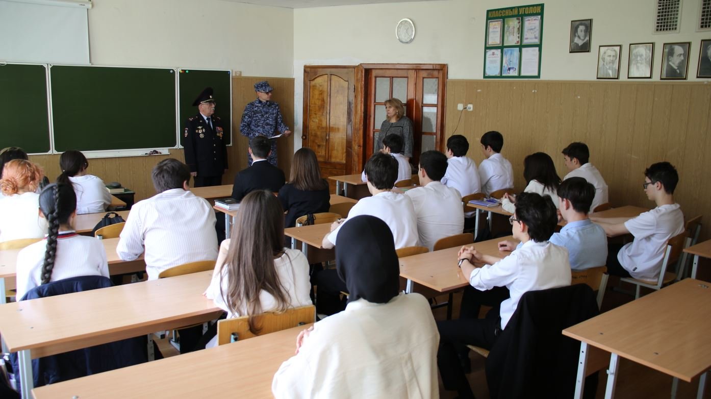 Как сообщили корреспонденту Информационного агентства МАНГАЗЕЯ, сотрудник Управления Росгвардии по Кабардино-Балкарской Республике майор полиции Залим Кафоев и Председатель совета ветеранов тероргана полковник полиции в отставке Руслан Хужоков провели для учащихся старших классов нальчикской школы № 19 урок Мужества.