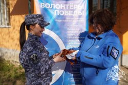В преддверии Дня Победы руководитель регионального отделения Всероссийского общественного движения "Волонтеры Победы" Вера Потемкина передала росгвардейцам Георгиевские ленточки, а также памятки о том, как правильно их носить и истории появления символа Победы.