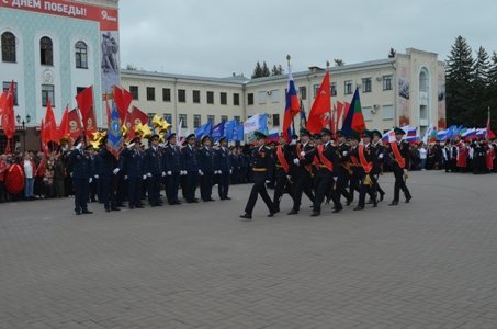 Далее под торжественные звуки марша по главной площади республики прошли участники парадных расчетов. Первыми парад открыла знаменная группы сотрудников Пограничного управления ФСБ России. За ними колонной прошли парадный расчет воинской части 20096, Министерства внутренних дел по КЧР, Главного управления Министерства РФ по делам гражданской обороны, чрезвычайным ситуациям и ликвидации последствий стихийных бедствий по КЧР и впервые на площади промаршировал женский парадный расчет Главного управления МЧС России по КЧР.