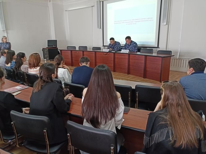 Сотрудник отделения комплексной защиты объектов регионального УВО капитан полиции Руслан Бугулов обсудил со студентами главные аспекты обозначенной темы. Молодые люди поделились с росгвардейцами своими идеями и видением проводимой сотрудниками правоохранительных органов работы в этом направлении.