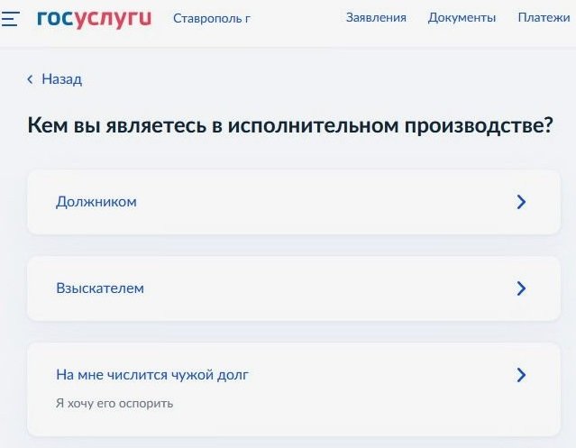 Как рассказали корреспонденту "Информационного агентства МАНГАЗЕЯ" в ГУ ФССП России по Ставропольскому краю, полные тезки должников, на которых числится чужой долг, могут оперативно решить проблему с помощью сервиса на портале Госуслуг.Для этого гражданам необходимо воспользоваться услугой «Подача заявлений и ходатайств в Федеральную службу судебных приставов». В пункте «Кем вы являетесь в исполнительном производстве?» выбрать вариант «На мне числится чужой долг. Я хочу его оспорить».