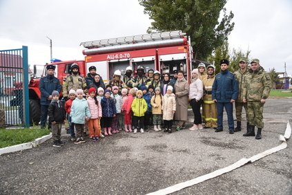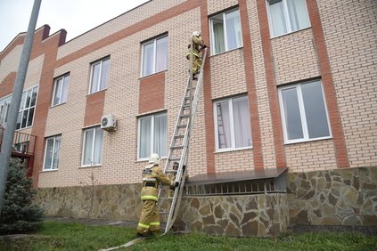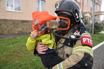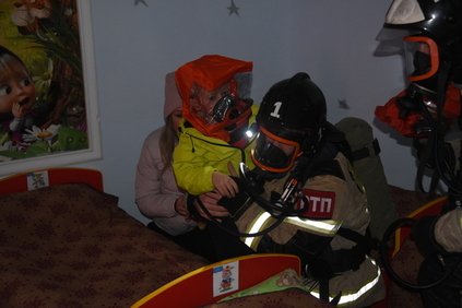 По легенде учений, условный пожар с последующим сильным задымлением произошел в игровой комнате на первом этаже здания ведомственного детского сада «Звездочка».