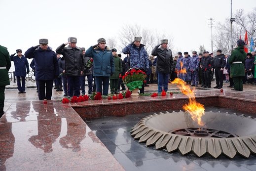 Как сообщили корреспонденту Информационного агентства МАНГАЗЕЯ, сотрудники и военнослужащие территориального управления Росгвардии приняли участие в митинг-реквиеме, посвященному 81-й годовщине самому жестокому и кровопролитному сражению - Сталинградской битве.