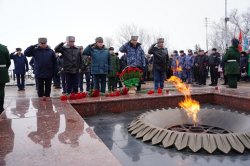 Присутствующие почтили память павших воинов минутой молчания и возложили цветы к «Вечному огню», тем самым выразив благодарность предкам, которые 81 год назад вступили в нелегкую борьбу за мирное небо над головой, покой страны и будущего поколения.