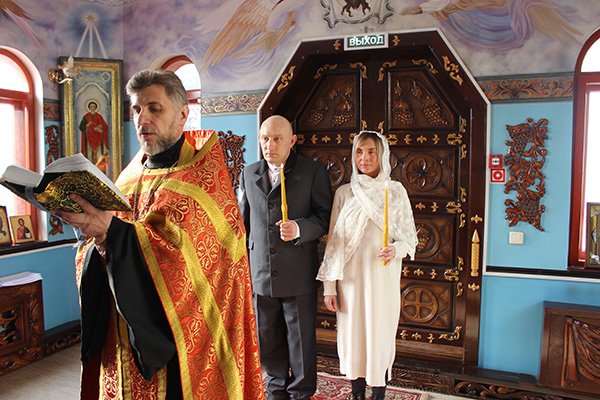 Евгений и Эльвира ждали этого дня с нетерпением и готовились к венчанию: священник провел с ними духовную беседу, исповедал и причастил. Церемония венчания прошла по всем правилам, очень трогательно и торжественно. Важное событие сопровождалось молитвами и восхвалениями семейных ценностей. Отец Василий призвал хранить свою семью, быть примером любви для детей.
