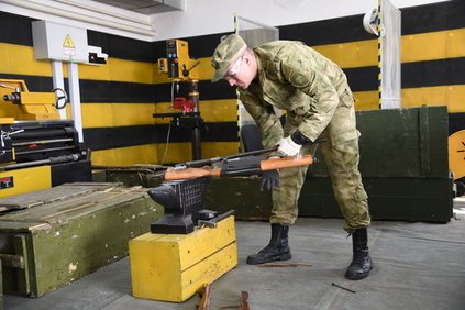 На протяжении нескольких дней в присутствии специально созданной комиссии и старшего офицера отдела артиллерийского вооружения техники и вооружения округа майора Данила Шалавина военнослужащие на специальном оборудовании разрезали и деформировали охотничьи ружья, автоматы, винтовки, карабины, травматические и газовые пистолеты, в том числе иностранного производства.