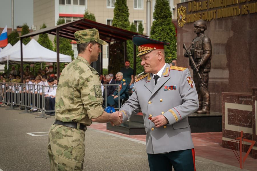 Также командующий округом отметил, что среди командиров легендарного подразделения - министр внутренних дел Российской Федерации генерал армии Анатолий Куликов, командующий Северо-Кавказским округом внутренних войск генерал-полковник Евгений Внуков и командующий Восточным округом войск национальной гвардии Герой России генерал-полковник Игорь Груднов.