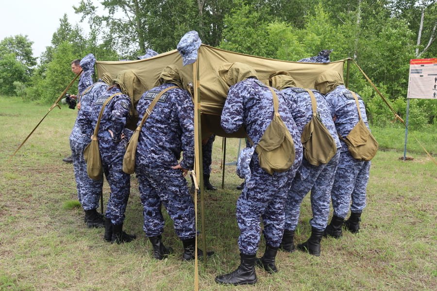 С этой целью росгвардейцы, соблюдая требования безопасности, погружали головы с надетыми противогазами в специально оборудованную палатку, внутри которой постоянно поддерживалась необходимая концентрация паров раздражающего вещества.