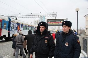 Транспортные полицейские Екатеринбурга обеспечили безопасность граждан, встречавших поезд Деда Мороза