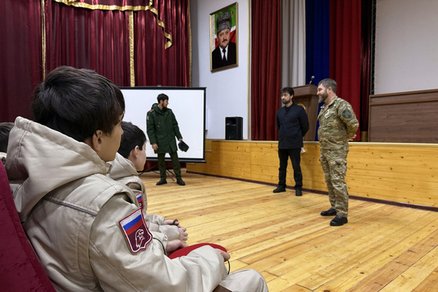 В Урус-Мартане в рамках акции военнослужащие полка оперативного назначения встретились с юнармейцами.