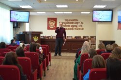 В ходе мероприятия сотрудницы Управления услышали в свой адрес множество приятных слов и поздравлений. А кульминацией концерта стало исполнение песни начальником отдела материально-технического обеспечения Виктором Румянцевым.