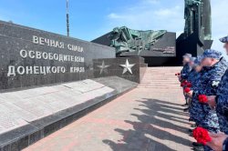 В преддверии Дня войск национальной гвардии Российской Федерации в парке имени Ленинского комсомола столицы республики у монумента Освободителям Донбасса росгвардейцы провели мероприятие в память о бойцах подразделений внутренних войск, отдавших жизнь в борьбе с немецко-фашистскими захватчиками в годы Великой Отечественной войны.