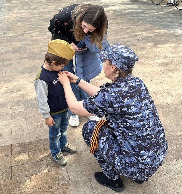 Росгвардейцы раздавали жителям и гостям города георгиевские ленточки - символ памяти и мужества. Правоохранители напомнили, что носить ленту следует на левой стороне груди в районе сердца в знак уважения и скорби по героям войны.