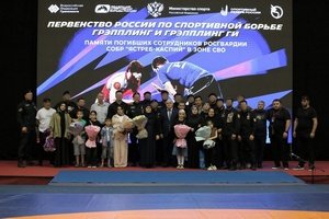 Как сообщили корреспонденту Информационного агентства МАНГАЗЕЯ в пресс-службе регионального управления Росгвардии, во Дворце спорта им. Али Алиева в городе Каспийске прошло Первенство России по спортивной борьбе грэпплинг и грэпплинг-ги памяти сотрудников СОБР «Ястреб – Каспий» Управления Росгвардии по Республике Дагестан, погибших при исполнении служебного долга в районе проведения специальной военной операции.