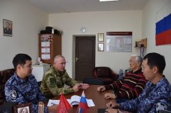 Как сообщили корреспонденту Информационного агентства МАНГАЗЕЯ, в международный День пожилых людей военнослужащие военно-политической работы Управления Росгвардии по Республике Калмыкия провели встречу с ветераном службы полковником в отставке Юрием Басхамджиевым.Росгвардейцы пригласили его на праздничное чаепитие и поздравили с праздником. Встреча прошла в теплой, дружеской обстановке. Офицеры поинтересовались заботами ветерана, который в ответ на внимание коллег поделился воспоминаниями о службе в органах правопорядка, которой прослужил 35 лет. С 2009 года Юрий Бадмаевич в отставке, но всегда при деле – до сих пор к его советам и рекомендациям по самым разным вопросам прислушивается молодое поколение воинов войск правопорядка. Он принимает активное участие в различных акциях и патриотических мероприятиях, проводимых росгвардейцами со школьниками, юнармейцами и щедро делится богатым опытом работы с сотрудниками и военнослужащими.