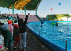 В курортном поселке Кирилловка прошли завершающие сезон выступления в единственном действующем дельфинарии Азовского побережья. Гостями финального шоу дельфинов и морских котиков стали учащиеся средних школ области и семьи сотрудников и военнослужащих регионального управления Росгвардии, сообщили корреспонденту Информационного агентства МАНГАЗЕЯ в пресс-службе ведомства.Родители и дети с неподдельным любопытством наблюдали за показательным выступлением морских артистов, которые под руководством опытных тренеров выполнили эффектные номера и трюки. Обаятельные морские котики и дельфины-афалины без труда осуществляли все команды наставника: крутили обручи, играли в импровизированный волейбол и время от времени помогали зрителям «освежиться» водой из бассейна.
