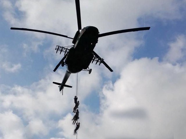 Участники занятий отрабатывали спуск с зависшего на высоте от 10 до 30 метров вертолета на различные виды подстилающей поверхности с оружием и без него, что позволило существенно повысить уровень боевой готовности и уверенность в действиях личного состава.