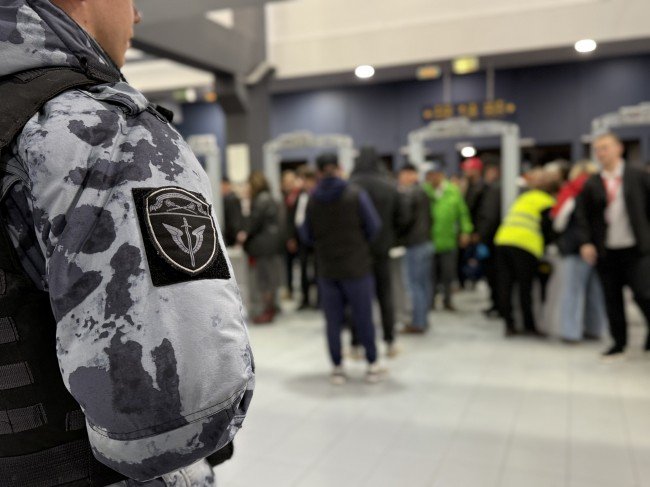 Перед игрой специалисты инженерно-технических групп ОМОН обследовали трибуны ледовой арены и прилегающую территорию на предмет обнаружения взрывоопасных предметов.