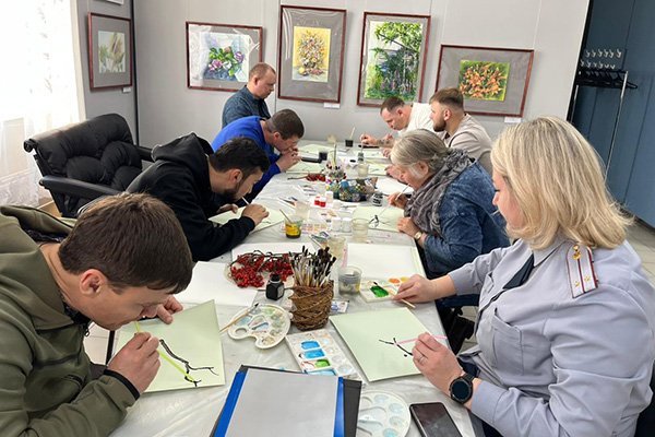 В городе Лесосибирске осужденные к принудительным работам ИУФИЦ Тюрьмы-2 посетили мастер-класс по живописи «Гроздья рябины в снегу»