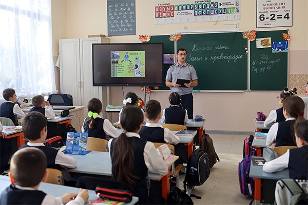 В МБОУ МО ГО «г. Каспийск» РД «Лицей № 14 им. Героя Российской Федерации Н.Э. Гаджимагомедова» прошел республиканский классный час «Закон и правопорядок», направленный на формирование у подрастающего поколения правосознания и уважения к закону, сообщили корреспонденту Информационного агентства МАНГАЗЕЯ в пресс-службе УФСИН.
