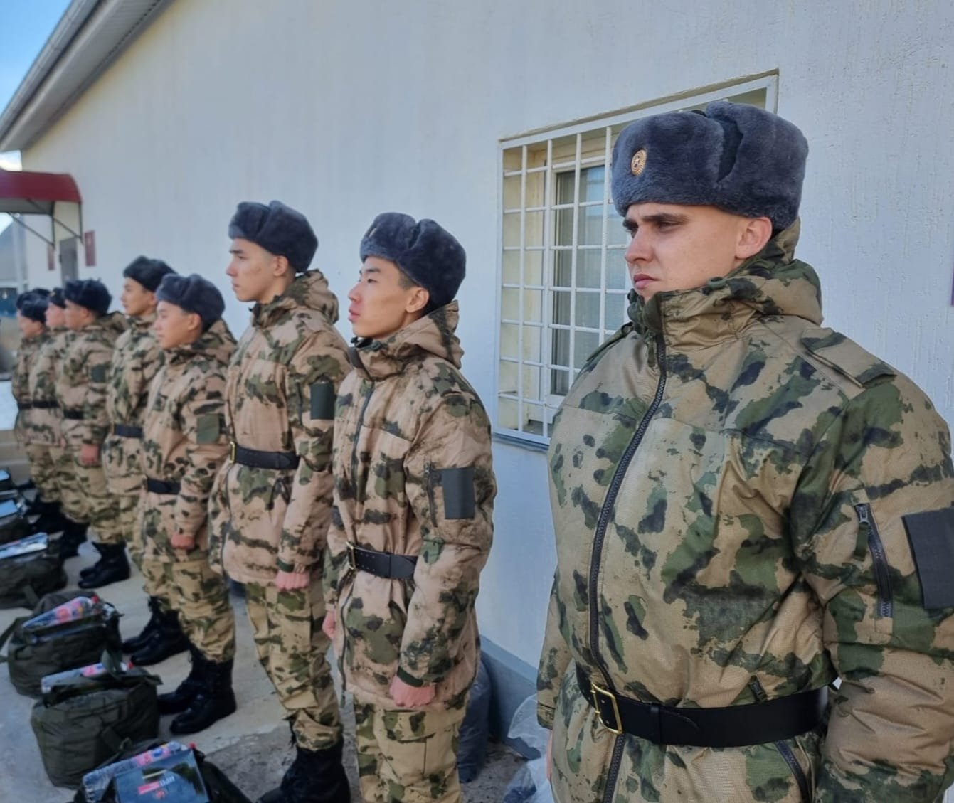 К одной из призывных команд, отправляющихся в воинскую часть Росгвардии, обратился с напутствием начальник отделения учета и комплектования Управления Росгвардии по Республике Калмыкия майор Санджи Кензеев.