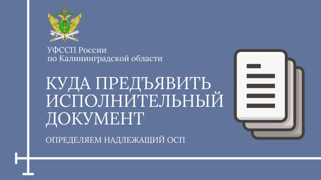 Чтобы узнать, в каком отделении судебных приставов будет возбуждено исполнительное производство, зайдите на сайт УФССП России по Калининградской области https://r39.fssp.gov.ru/. На главной странице найдите раздел «Сервисы», далее — «Определение отдела судебных приставов по адресу», а затем следуйте всплывающим подсказкам.