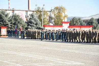 Празднование началось с торжественного митинга на плацу соединения с выносом Государственного флага Российской Федерации и Боевого знамени соединения.
