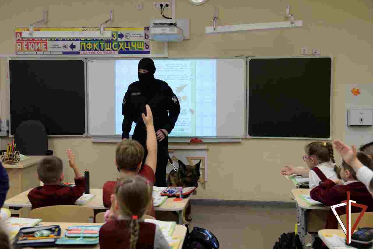 Кинологи Управления Росгвардии по Свердловской области рассказали екатеринбургским школьникам о правилах безопасности и своей профессии