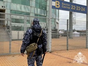 До начала матча специалисты Росгвардии и МВД обследовали трибуны стадиона и прилегающую территорию на наличие взрывоопасных предметов. Кроме того, правоохранители обеспечили пропускной режим и организовали патрулирование прилегающей к спортивной арене территории.