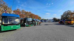 В Севастополе на площади П.С. Нахимова прошла выставка техники от «Севэлектроавтотранс имени. А. С. Круподерова». Для горожан и гостей города организаторы представили 11 видов техники, включая 2 модели троллейбусов прошлых лет. Именно в этот день ровно 75 лет назад, в Севастополе был запущен первый троллейбусный маршрут — от вокзала до горы Матюшенко.